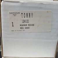 SAINT-LOUIS, TOMMY, XXe siècle, Années 1990 : suite de 6 de verres à vin en cristal Roemer bleu cobalt, bleu clair, vert, rouge, améthyste et chartreuse, le pied étoilé, la paraison à biseaux, filets, perles et diamants. Cachets (Millésime 1998) et étiquettes. H. 19.7 cm. Micro-rayures. Etat quasi neuf. Avec leurs boîtes carton dont 3 avec des étiquettes TOMMY. Le prix neuf actuel d’un verre en ligne est de 415 euros.Modèle créé en 1928 rappelant le nom donné aux soldats anglais lors de la première guerre mondiale.