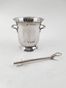 Service de Cocktail vintage comprenant :- 1 seau à glace moderne en inox de Guy DEGRENNE, modèle tulipe contour. H. 14.3 cm.- 1 pince à glaçons vintage tubulaire filetée à système mécanique en métal nickelé. L. 20.5 cm.