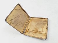 WILLIAM NEAL & SONS Ltd, vers 1924 : étui à cigarettes Art Déco en argent 925 mil. et vermeil à décor guilloché et motifs de chevrons. Signé J.C VICKERY, 145 Regent Street W. Poinçon de fabricant à Birmingham de William Neal & Sons. Poids : 92.2 g. Dim. 8.2 x 7.2 cm. Ressort interne détendu. Non chiffré. TBE de fraicheur.