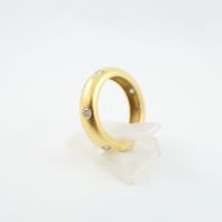 Bague jonc en or 750 mil. ponctuée de 12 diamants brillantés de 0,03 carat environ chacun (TDD : 52) (largeur : 0,5 cm environ) (petit éclat). 6,7 g. brut