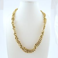 Collier et bracelet en or 750 mil. à maille US, travail français (longueurs : 46,5 et 21 cm environ) (largeurs : 1,2 et 1 cm environ) (en l’état). 39,5 g.