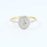 Bague en or 375 mil. centré d'un chaton ovale orné de diamant 8/8 épaulé d'une ligne de diamants 8/8. (TDD: 51,5). 1,3 g. brut.