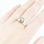 Bague en or 750 mil. centrée d’une perle de culture grise (diamètre : 11 mm environ) épaulé de diamants calibrés. (TDD : 54) (rhodiage à prévoir). 6,1 g. brut.