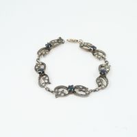 Bracelet en argent 925 mil. et or 585 mil. serti de roses et de saphirs. A décor ajouré et guilloché de rinceaux. (Longueur : 18 cm environ). 11,6 g. brut.