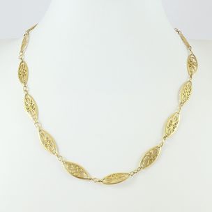 Collier en or 750 mil à maillons ovale à section carré (Long : 45 cm) (Légères déformations). 26,1 g.