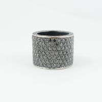 E) Art 524 bis du CGI al c : Large anneau en or gris 750 mil ormé et bordé de diamants noirs (TDD : 50 environ; Larg : 1,6 cm). 10,7 g brut.