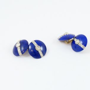 Montre de dame en acier sur bracelet cuir usagé, boîtier rond (Diam : 31 mm) à lunette nacrée, index diamants et chiffres arabe, cadran parsemé de diamants, MAUBOUSSIN "Le jour se lève" mouvement quartz.