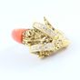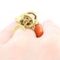 Bague « Tête de bélier » en or 750 mil. le corps rehaussé de corail, les yeux d’émeraudes, les cornes de diamants brillantés. (Egrisures, traces de colle). (TDD : 50). 10,3 g. brut