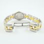 BAUME & MERCIER « Linéa ». Bracelet-montre de dame en acier et métal doré, boîtier rond, lunette gravée de chiffres arabes, cadran doré rayonnant muet, mouvement à quartz, sur bracelet en acier et métal doré à boucle déployante papillon signée. Signé et numéroté. (Diamètre : 27 mm). (Tour de poignet : 18 cm). (Rayures, usures, oxydations au cadran).
