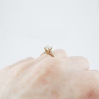Bague en or 750 millièmes ornée au centre d’un diamant princesse. (Manque 2 griffes). Tour de doigt : 50. Poids brut : 3,1 g. Accompagnée d’un rapport diamant du GIA no 1102229118 du 16/10/2009 précisant : – Masse : 0,70 ct – Couleur : D – Pureté : VVS2 – Fluorescence : Aucune – Dimensions : 4,85 × 4,62 × 3,63 mm