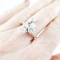 Bague en or gris 750 millièmes ornée au centre de diamants navettes et ronds de taille brillant.Tour de doigt : 56 Poids brut : 5,5 g