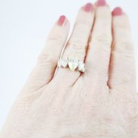 Bague en or gris 750 millièmes ornée d’une ligne de cinq diamants navettes, celui du centre plus important. Tour de doigt : 51 environ. Poids brut : 3,9 g. Accompagnée d’un rapport diamant de C.G.L.no 28704 / NP161 du 15/03/2023 précisant : – Masse : 1,97 ct – Couleur : M – Pureté : SI2 – Fluorescence : Medium – Dimensions : 12,16 – 6,25 × 4,42 mm.