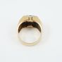 Bague en or jaune 750 millièmes et platine 850 millièmes, le centre à décor géométrique orné d’un diamant rond de taille brillant. (Usures et manque de mise à grandeur).Tour de doigt : 54,5. Poids brut : 10,9 g. Poids approximatif du diamant : 1,00 / 1,15 ct.