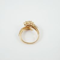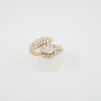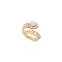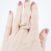 Bague en or jaune 750 millièmes figurant un serpent stylisé enroulé partiellement, serti de diamants ronds de taille brillant, un plus important de forme poire. Tour de doigt : 58 environ. Poids brut : 8,7 g