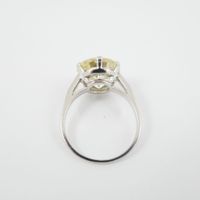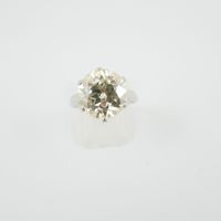 Bague en platine 850 millièmes ornée au centre d’un diamant rond demi-taille. Tour de doigt : 57. Poids brut : 6,3 g. Accompagnée d’un rapport diamant de C.G.L. no 28721 / NP149 du 15/03/2023 précisant : – Masse : 6,59 ct – Couleur : Q / R – Pureté : SI1 – Fluorescence : Aucune – Dimensions : 12,02 – 12,12 × 7,02 mm