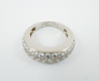 CARTIER Bague en platine 850 millièmes, le centre de forme bombée orné d’un pavage de diamants ronds de taille brillant. (Usures). Signée et numérotée. Tour de doigt : 49 Poids brut : 7,7 g.