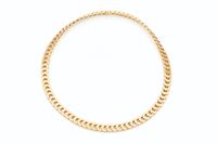 CARTIER. Collier articulé en or jaune 750 millièmes, les maillons à décor de « C ». Signé et numéroté. Longueur : 42,5 cm. Poids brut : 86,9 g. (Fermoir accidenté). Avec un écrin, une boîte et un certificat de la Maison CARTIER.