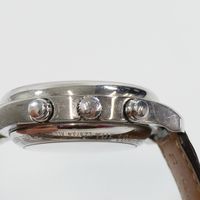 LONGINES, Master Collection. Montre ronde chronographe. Référence L2.673.4. Boîtier en acier signé et numéroté 36599697. Cadran guilloché crème à trois sous-compteurs, chiffres arabes noirs, phasesde lune à 6h, date par pointeur, et aiguilles glaives bleuies. Mouvement mécanique à remontage automatique signé. Calibre L678.2. Diamètre : 40 mm. Bracelet en cuir (*) signé avec boucle déployante signée. Sans écrin ni papiers.