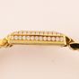PATEK PHILIPPE Montre de femme de forme carrée. Référence 4874. Boîtier en or jaune 750 millièmes signé et numéroté. Lunette sertie de diamants. Cadran nacré, index diamants et aiguilles dorées. Mouvement quartz signé. Dimensions : 23 × 23 mm environ. Bracelet intégré en or jaune 750 millièmes, attaches serties de diamants, boucle déployante signée en or blanc 750 millièmes. Poids brut : 105,3 g. Boîte et surboîte, sans papiers.