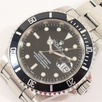 ROLEX, Submariner. Montre d’homme ronde de plongée. Référence 16610. Boîtier en acier signé et numéroté K726969. Cadran noir à index et aiguilles luminescents, guichet date à 3h. Mouvement mécanique à remontage automatique. Calibre 3135. Diamètre : 40 mm environ. Bracelet Oysteren acier référence 93250 avec boucle déployante signée. Sans écrin ni papiers. Crantage lunette manquant, lunette tourne librement