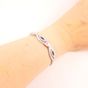 (Assorti au lot précédent). Bracelet en or gris rhodié 750 mil composée d’une chaine gourmette rainurée aplatie formant 3 entrelacs centrés de saphirs navette dans un entourage de diamants brillantés (0.02 ct environ), avec huit de sécurité (long. :18.5 cm). 22.9 g. brut