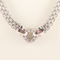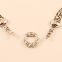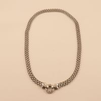 Collier ruban cotte de maille en or gris 750 mil à fermoir circulaire formant motif central (amovible) serti de diamants brillantés (long. : 43 .5 cm environ, diam. : 1.2 cm) (minuscules égrisures. 22.8 g. brut