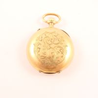 Montre de col en or 750 mil, boîtier rond, fond de boîte chiffré, cuvette en or, cadran blanc à chiffres romains et arabes, mouvement mécanique non d’origine signé LONGINES, travail français (poinçon tête de cheval, départements, 1838-1919). 22,5 g. brut