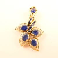 Pendentif à motif feuillagé 2 ors 585 mil serti de saphirs (ronds et ovales) et de diamants brillantés (dim. : 3 x 2 cm environ) (1 pierre manquante, égrisures). 4.3 g. brut