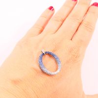 Pendentif ovale ajouré en or gris rhodié 750 mil pavé d’un dégradé de pierre fines bleues et de diamants ronds, la bélière rehaussée de diamants (dim. : 2.4 x 2.1 cm environ) (égrisures) (5.1 g. brut)Cordon en cuir bleu, le fermoir en or gris 750 mil (long. : 41 cm environ) (déformations). Poids brut total : 7.2 g brut