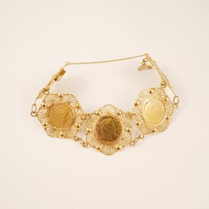 Bracelet deux ors 750 mil. à maille corde entrelacée d’une chainette maille forçat. (Longueur : 19 cm). (Accident, chocs). 8,7 g.