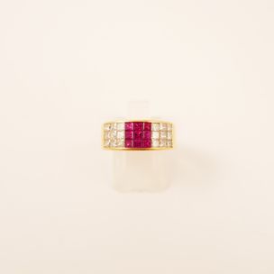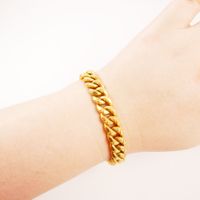Bracelet en or 750 mil. à maille gourmette partiellement amatie, fermoir cliquet avec chaînette de sécurité. Travail français. (Tour de poignet : 17 cm ; Largeur : 1 cm environ). 14,3 g.