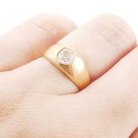 2 Bagues, dont une bague « fleur » en or 750 mil. centrée d’un rubis entouré de petits diamants 8/8. (TDD : 50). Une bague en or 750 mil. centré d’un dimant de taille ancienne (environ 0,4 carat). (TDD : 51). 7 g. brut.
