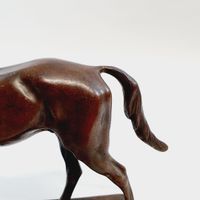 Gaston d'ILLIERS (1876-1932) (d’après) « Cheval au pas » Sujet en bronze à patine brune, signé sur la terrasse. Cachet de reproduction et numéro 44 sous la base. (Légères usures sur la base). Dimensions : 18 x 18,5 x 5 cm environ.