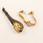 2 montres de dame en or 750 mil dont 1 REGLIA, boîtier ovale (Dim : 15 x 18 mm environ), cadran argenté taché, tour de bras souple en or tressé 750 mil (Long : 16 cm), mouvement quartz rapporté et 1 LIP sur bracelet cuir usagé, boîtier carré à attaches fantaisie (Dim : 17 x 23 mm) cadran doré à chiffres arabe et index point, mouvement mécanique. (Verres rayés). 39,8 g brut.