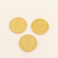 3 pièces de 20 frcs français en or 900 mil. 19,3 g.