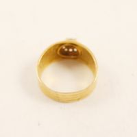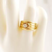 Anneau large godronné en or 750 mil centré d'un diamant (environ 0,25 ct) (griffes à revoir, manque l'entourage, fêle à la monture) (TDD : 57). 6 g brut.