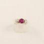 Bague en platine 850 mil centrée d'un saphir rose (égrisures) épaulé de diamants 8/8 et troîda (TDD : 54). 6,7 g brut.
