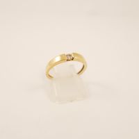 Bague en or 375 mil. ornée d’un diamant brillanté de 0,10 ct environ en demi-serti clos (TDD : 52). 1,8 g. brut.