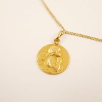 Collier en or 750 mil. retenant 2 pendentifs dont une médaille religieuse et un angelot, avec chaînette de sécurité (longueur : 49,5 cm environ) (chiffrés). 7,7 g.