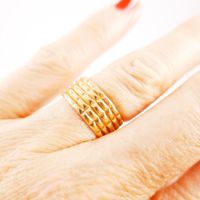 Large anneau en or 750 mil. à décor de petits godrons (TDD : 52) (chiffré). 4,8 g.