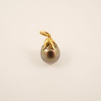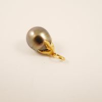 Pendentif en or 750 mil. orné d’une perle de culture grise (dimensions : 2,1 x 0,9 cm environ). 2,7 g. brut.