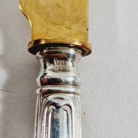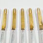 ARMAND FRENAIS, début du XXe siècle : suite de 12 couteaux à crustacés ou homard en métal argenté à moulures de filets, les lames dorées. Poinçon de fabricant (actif 1877-1927). Non chiffrées. L. 17.2 cm. Rayures d’usage. TBE. Dans écrin défraichi monogrammé.