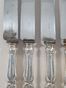 HENIN & CIE, fin XIXe-début du XXe siècle : Ménagère de 37 pièces en argent 950 mil. modèle filet violoné à agrafes feuillagées et coquille comprenant : - Dans un écrin de détaillant F. RÖTIG au Havre : 12 grandes fourchettes, 12 grandes cuillers et 1 louche chiffrées LG. Minerve 1er titre de 1838 et poinçon de Maître (enregistré en 1896). Poids net : 2271.6 g. L. d’un couvert : 21.3 et 21.5 cm. L. louche : 34 cm. Rayures d’usage. - Dans un autre écrin défraichi : 12 grands couteaux à manches fourrés monogrammés (monogramme différent des couverts et de la louche). Minerve 1er titre de 1838 et poinçon de Maître. Quelques couteaux d’Henin & Vivier (actif 1891-1896) . Poids brut des couteaux : 921 g. L. 25.5 cm. Lames acier signées Paris. Oxydations. Rayures d’usage. Quelques fixations de manches à revoir éventuellement.