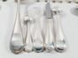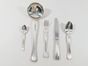 SOCIETE BIENVENU-PLATIL, XXe siècle après 1983 : ménagère de 49 pièces en métal argenté, modèle Perles comprenant 12 grands fourchettes, 12 grandes cuillers, 12 grands couteaux lames inox, 12 petites cuillers et 1 louche. Nouveau poinçon de fabricant d’après la réforme du poinçon carré de 1983. L. d’un couvert : 21 cm. L. d’un couteau : 24.5 cm. Non chiffrée. Légères rayures. TBE de fraicheur.