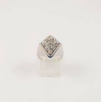 Bague chevalière losangique en platine 850 mil et or gris 750 mil pavée de diamants TA (de 0.05 à 0.20 carat environ), travail français. (Egrisures, petites rayures d’usage). 10,3 g. brut