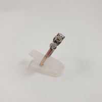 Bague jarretière en or gris 750 mil sertie de 4 diamants TA (de 0.13 à 0.30 environ), travail français. (Débris d’anneau de mise à grandeur à l’intérieur, 1 pierre cassée, petits manques de matière, égrisures). (TDD : 62,5). 3,4 g. brut