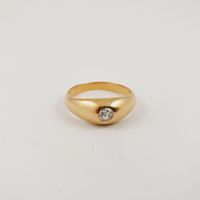 Bague jonc en or 750 mil centrée d’un diamant TA en serti clos (0.20 carat environ), travail français. (Egrisures). (TDD : 56 environ). 4,8 g. brut