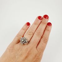 Bague rosace en or gris 750 mil sertie de diamants (16/16 et 8/8), travail français. (Minuscules manques de matière). (TDD : 56). 5,6 g. brut