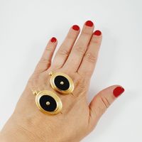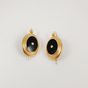 Paire de dormeuses ovales en or 750 mil sertie d’une plaque d’onyx, travail français. (Tiges légèrement déformées). (Dim :3 x 2,2 cm environ). 10.3 g. brut