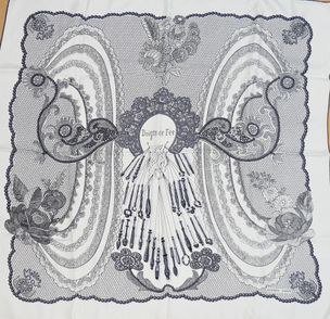 100 / 140 €HERMES Paris. Carré en twill de soie imprimée titré « Doigts de fée » en camaïeu de gris anthracite sur fond blanc, signé LATHAM (Cathy). 86 x 88cm environ. Bon état, petite tache. Patience et adresse de la dentelle aux fuseaux soulignés dans cet original carré.Soyez au courant des ventes qui vous intéressent !